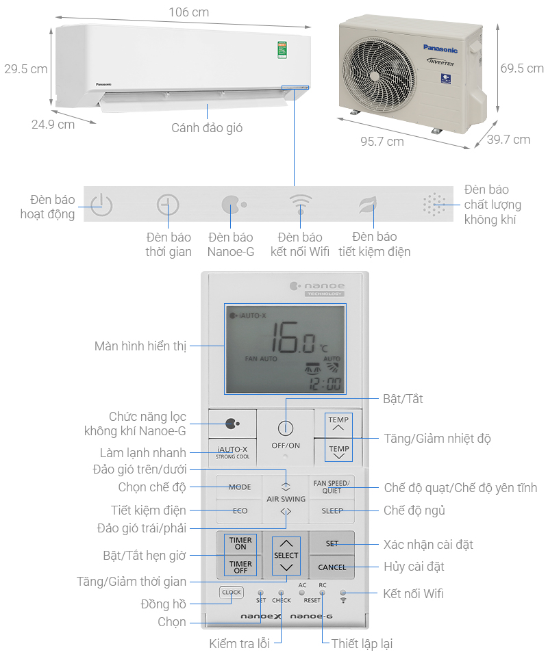 -Công nghệ Nanoe™ X thế hệ 3 cho không khí trong lành, ức chế sự phát triển của vi khuẩn, virus,…